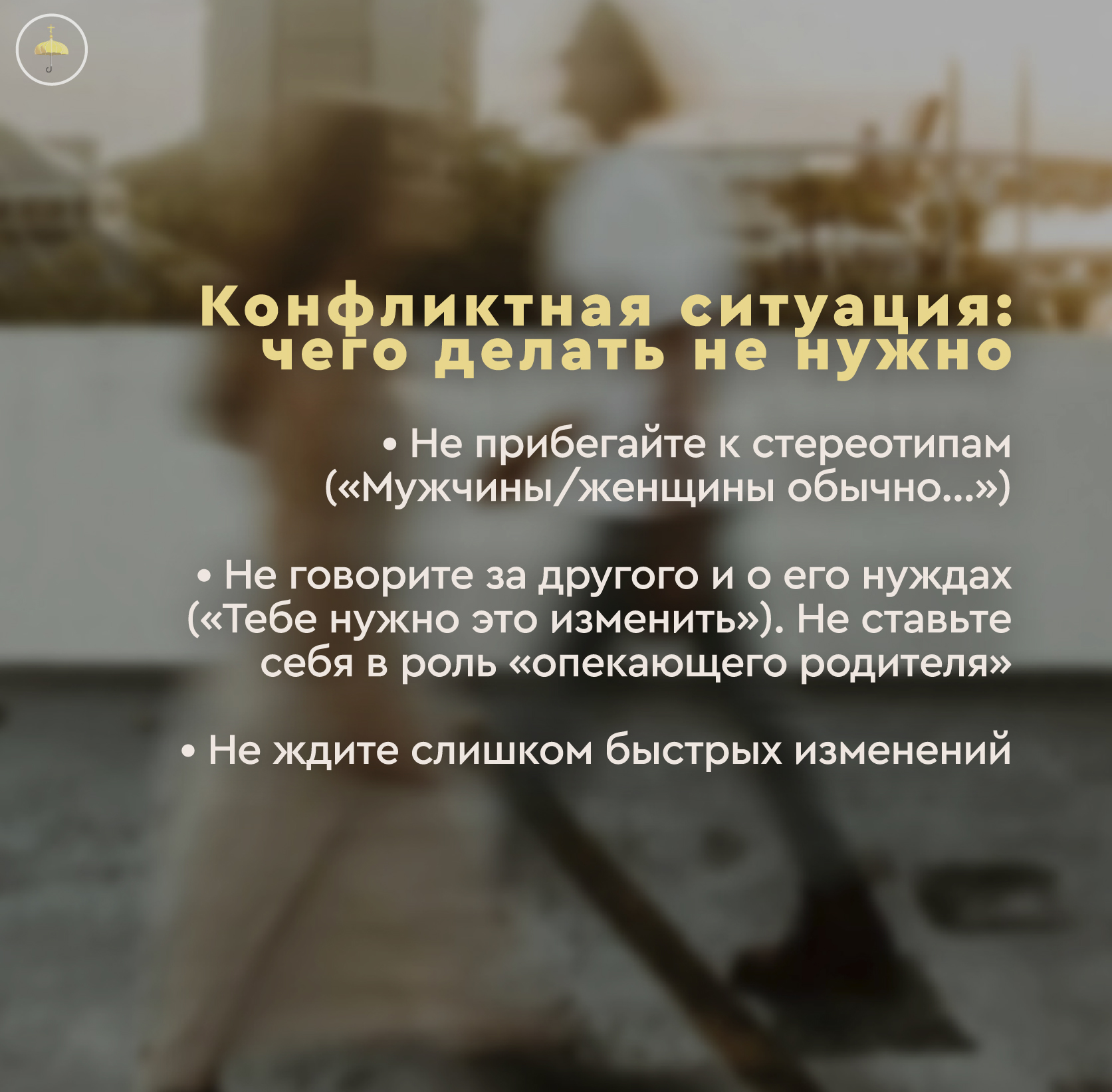 | Не берите весь разговор на себя | Дайте супругу возможность объясниться |