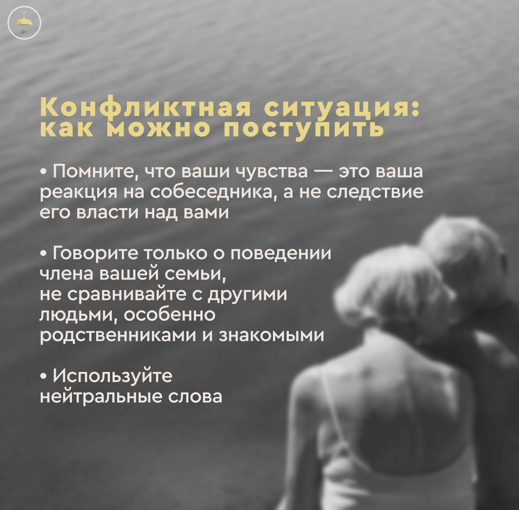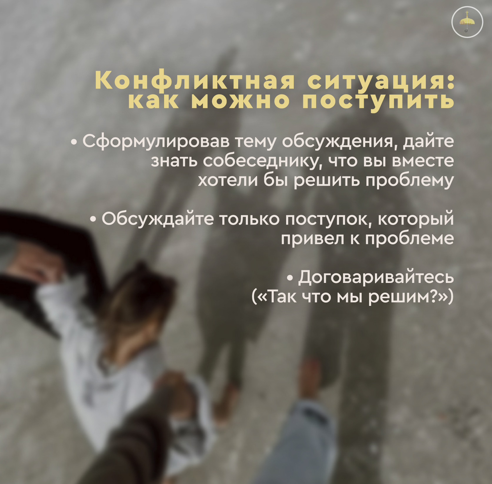 Тем важнее следить за своими словами и переживаниями в конфликтной ситуации, направляя их на достижение общей цели — поиска выхода или решения, который бы устроил всех участников. Ниже приведены рекомендации, которые помогут этого достичь.