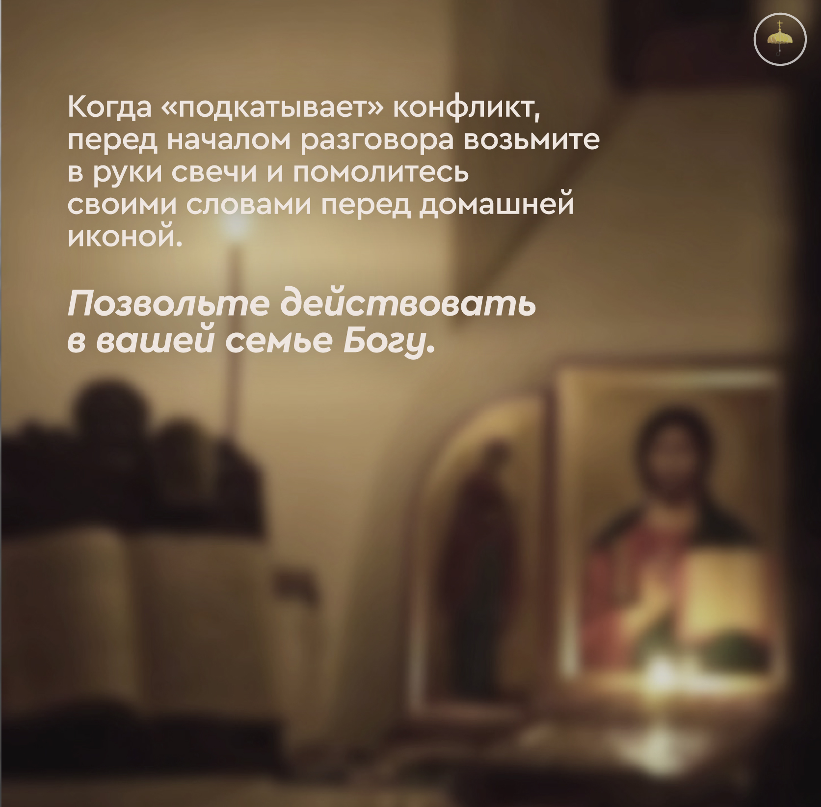 10. Когда «подкатывает» конфликт, перед началом разговора возьмите в руки свечи и помолитесь своими словами перед домашней иконой. Позвольте действовать в вашей семье Богу.