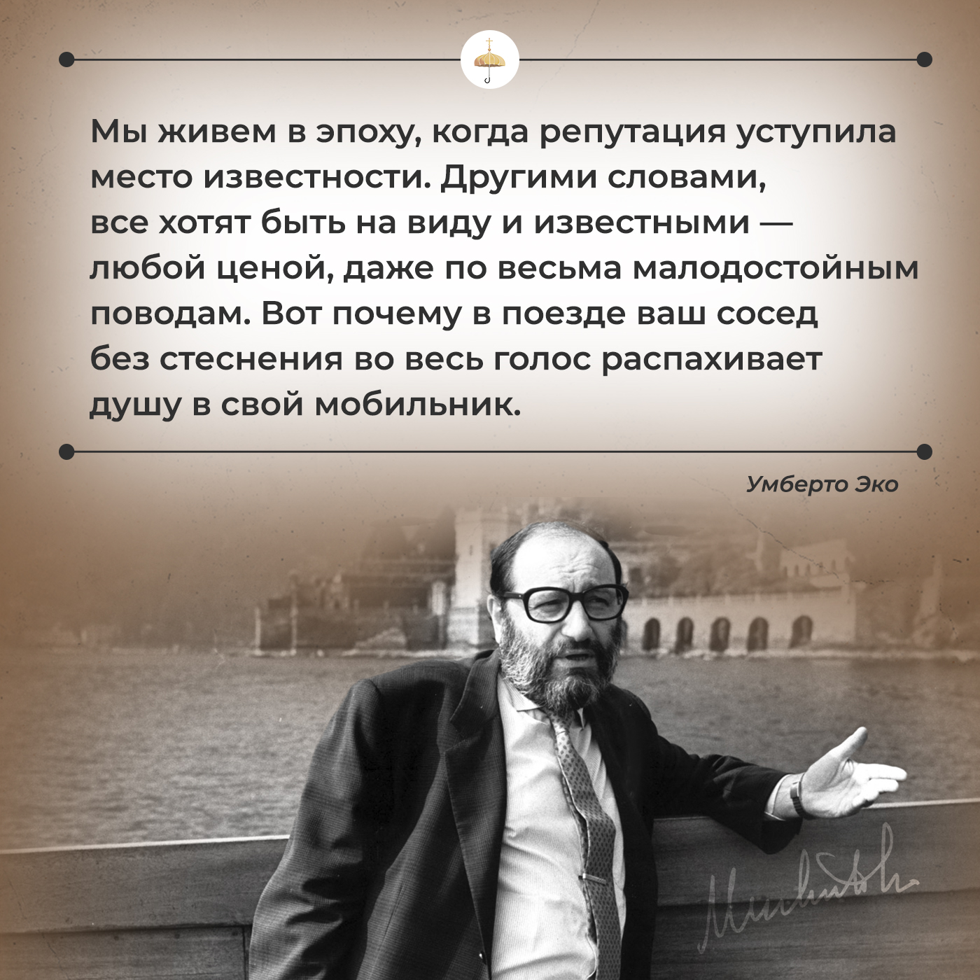 Но есть на примете собеседник, с которым просто необходимо разделить внушительный запас пармезана, кастрюлю пасты, бутылку вина и радость общения. Да, это Умберто Эко. Сейчас расскажу почему.